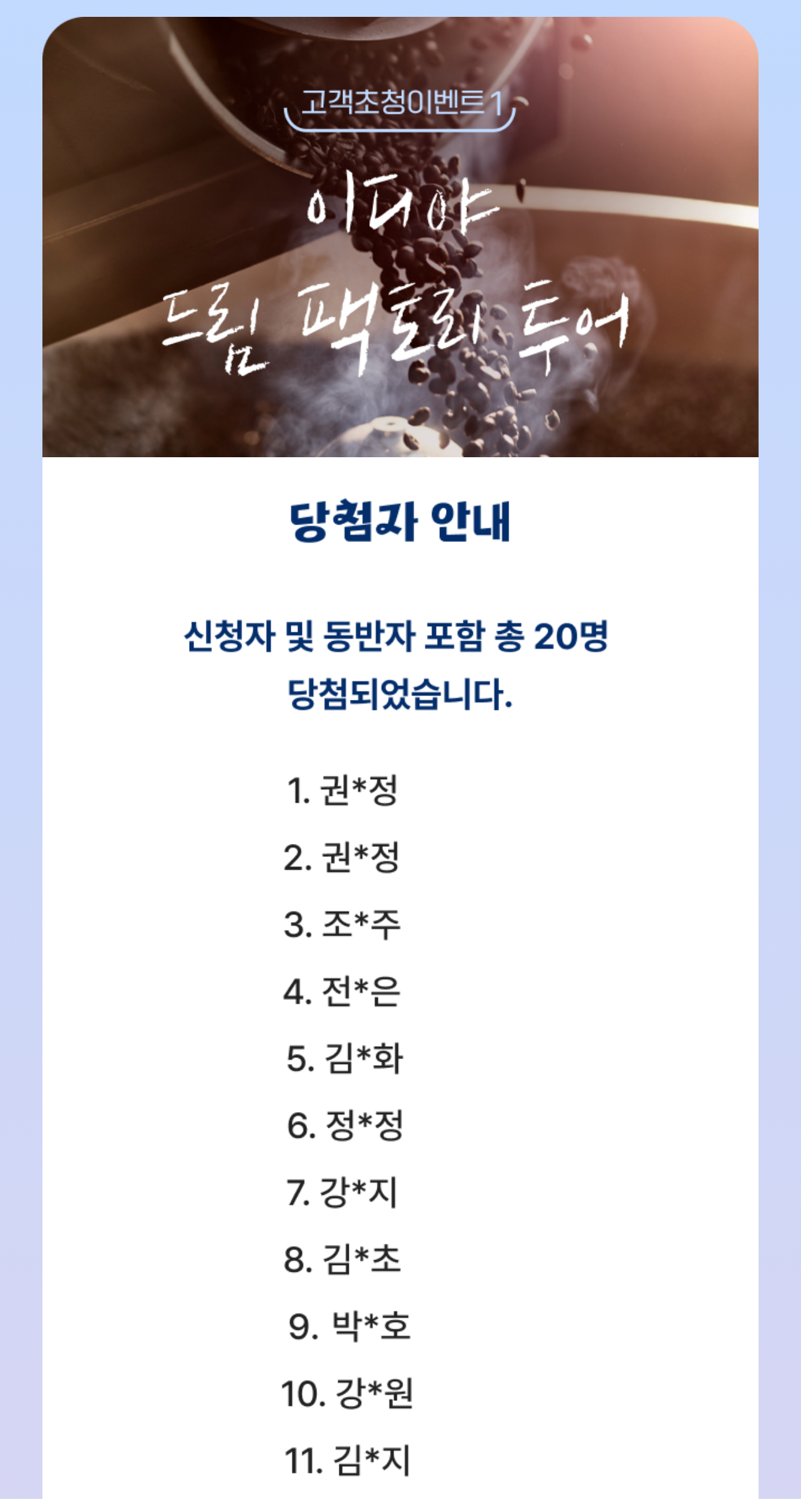 지난달 바리스타 2급 자격증 준비를 하던 중 이디야 이벤트 '드림팩토리 투어'를 신청했고, 당첨 문자를 받았다.
