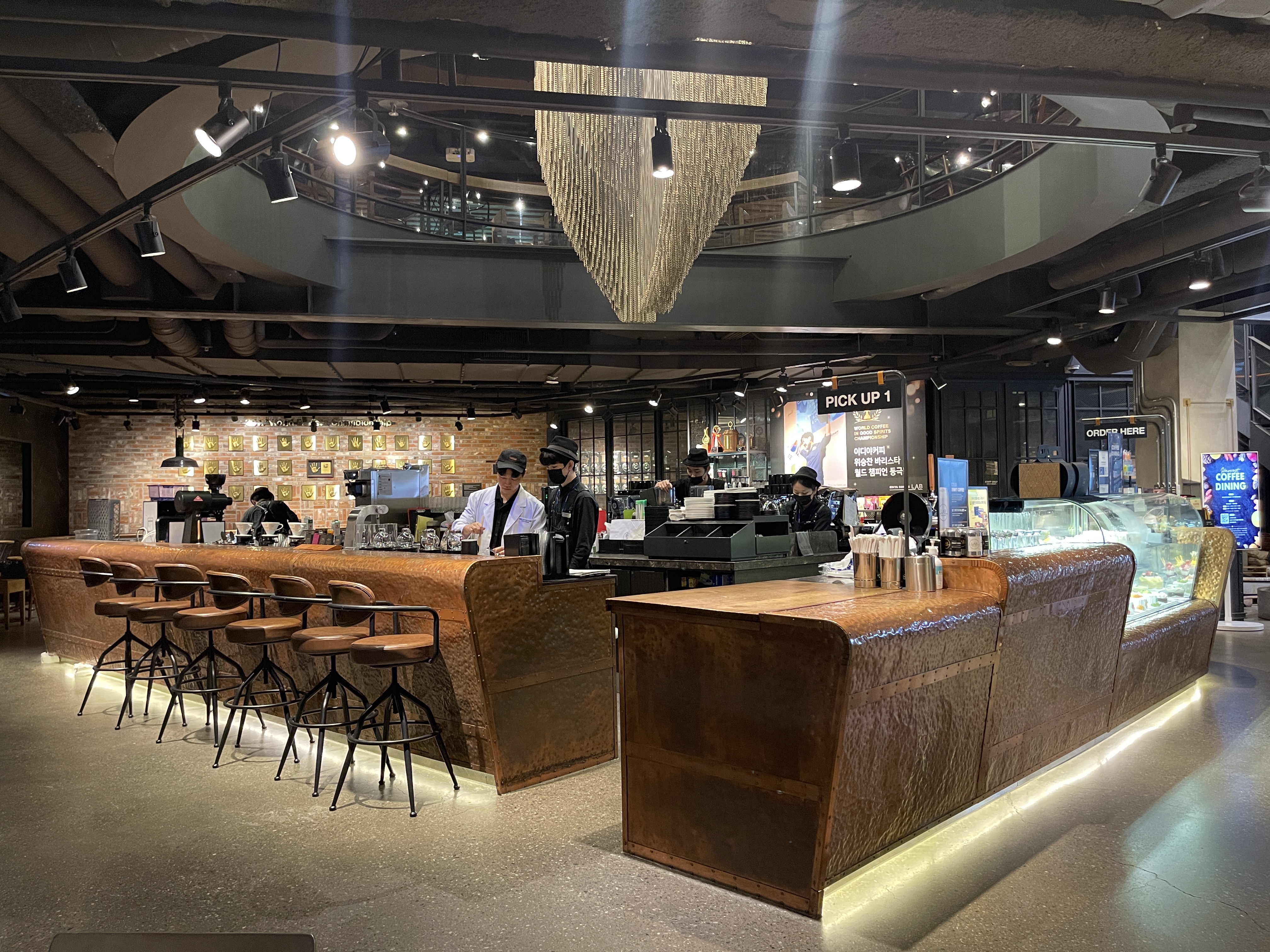 벽면에는 월드 커피 챔피언 위승찬 바리스타의 사진과 상패가 전시되어 있었다.