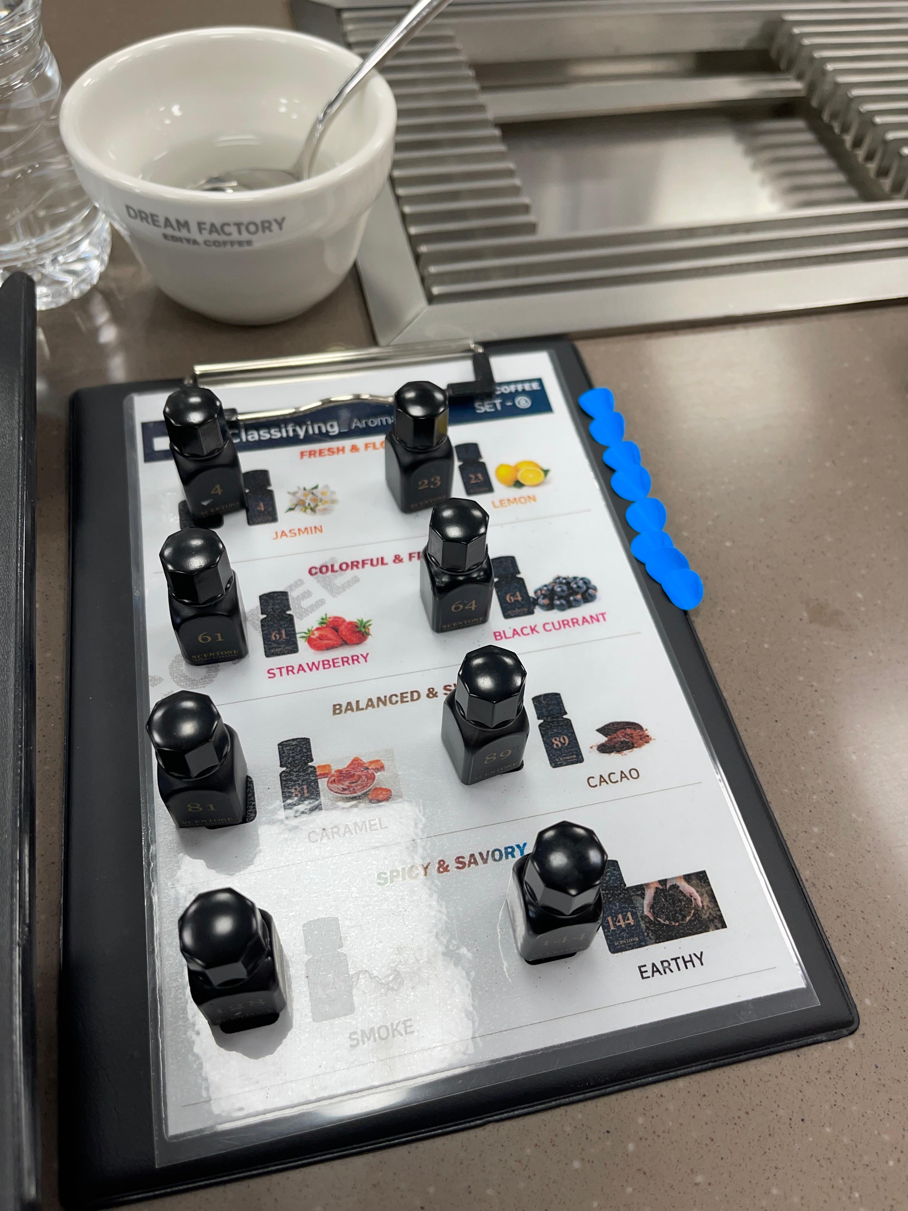 커피의 4가지 향미를 직접 코와 혀로 느껴보며 구분하는 실습이 진행되었다.