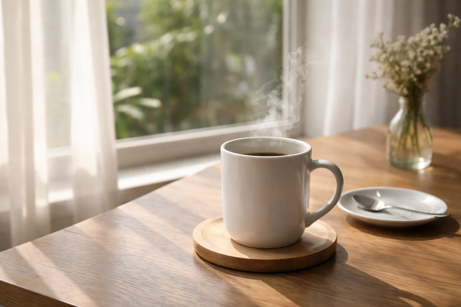 커피 한 잔과 함께 조용히 아침을 맞이했다.